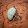 1970s Vintage Sterling Silver Ring with beautiful Light Turquoise Nugget stone in a size 6. A beautiful turquoise nugget with complex matrix structure. This is a unique and beautiful ring. These rings were made in 1975 by a local Tucson Jeweler by a friend of mine who used to sell Turquoise back in the seventies. These rings were never worn and have been sitting in a box at his house for 45 years and now they are available to you!